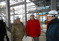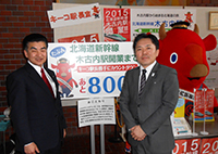 開業まで約2年と迫った、北海道新幹線(仮称)新函館駅駅舎(北斗市:写真上)・木古内駅駅舎(大森木古内町長と:写真下)工事、新幹線総合車両基地(七飯町)を調査しました。