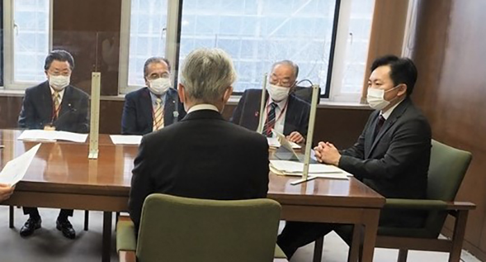 消費税やコロナの影響に配慮した税体制のあり方など、急がれる対策や新年度への課題など要望を頂き、意見交換を行いました。
