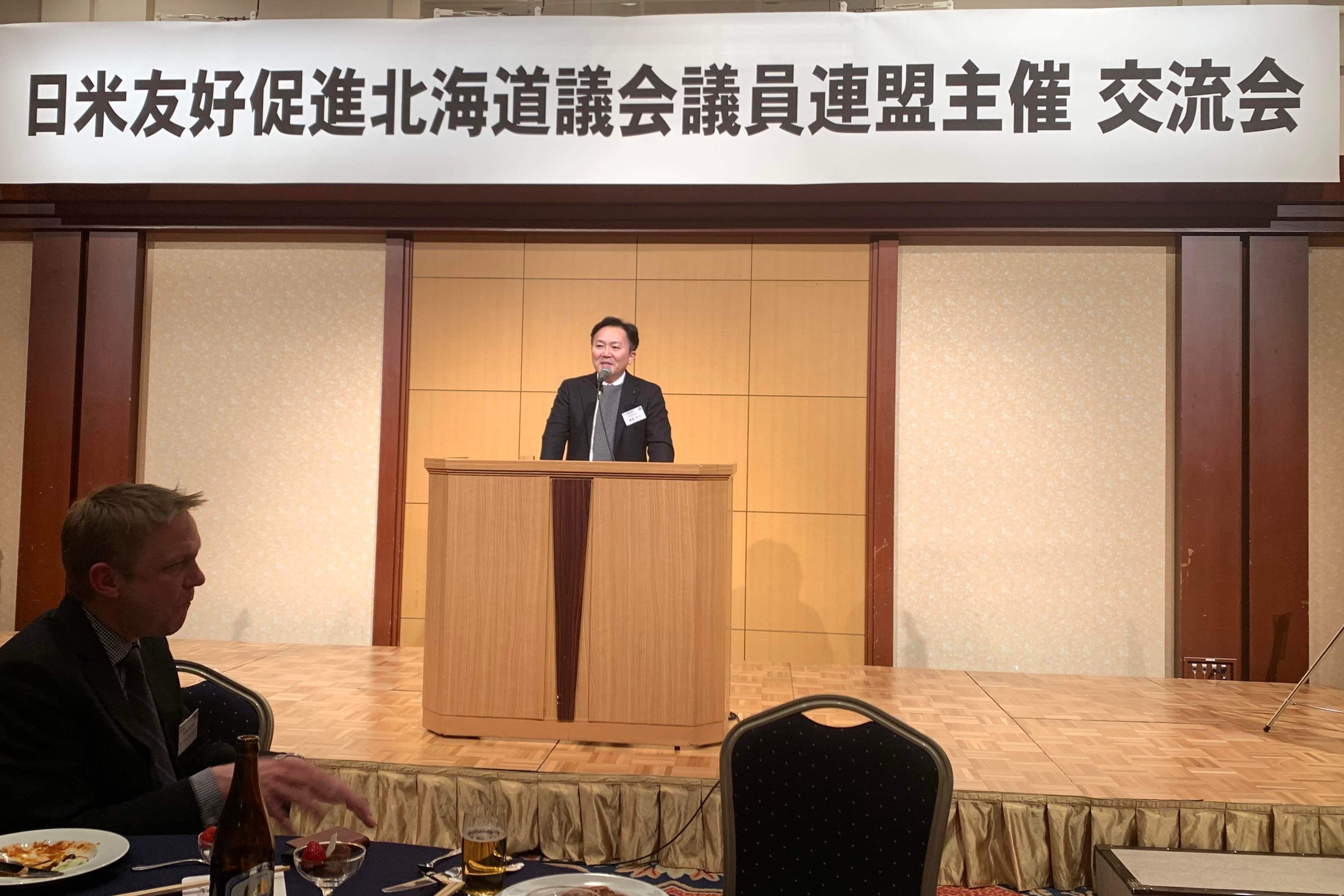 コロナによって交流が途切れていた、在札幌米国総領事館及び領事館の方々と北海道議会日米友好促進議員連盟の交流会が開催され、議連を代表して挨拶の機会を頂きました。